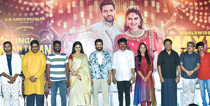 படம் பற்றி நடிகர் சந்தானம் கூறுகையில், “’இங்க நான் தான் கிங்கு’ படத்தில் ஹீரோ என்னவோ நான் தான் ஆனால் கிங்கு அன்புசெழியன் சார் தான். தமிழ்நாட்டுக்கே பெரிய ஹீரோ அவர் தான். அவர் ஆபிஸுக்கு வராத ஹீரோவே இல்லை. அவரிடம் நானே காசு கேட்டுதான் போனேன், என்னை அவருக்கு பிடித்தது, வீடு வாங்க காசு கேட்டு போனேன், ஆனால் அப்படி செய்யாதீர்கள், படத்திற்கு அட்வான்ஸ் தருகிறேன், படம் செய்யலாம் என்றார். அவர் மனதளவில் மிக நல்ல மனிதர். என்னுடன் எப்போதும் ஜாலியாக பேசுவார். அவர் என்னிடம் இந்தப்படம் செய்யலாம் என்றார், எனக்கும் பிடித்திருந்தது என்றவுடன் உடனே செய்யலாம் என்றார். அவருடன் இணைந்து படம் செய்தது சந்தோஷம். படம் பார்க்க வருபவர்கள் சிரித்துவிட்டு போக வேண்டும் என்றார், தயாரிப்பாளராக இல்லாமல் தியேட்டர் ஓனராக இப்படத்தை எடுத்துள்ளார். சுஷ்மிதா என் படம் மூலம் தயாரிப்பாளராக வந்துள்ளார், வாழ்த்துகள். இமான் இதுவரை என் படத்தில் இல்லாத கலரில் எனக்கு மிக வித்தியாசமான இசையை தந்துள்ளார், நன்றி. இயக்குநர் ஆனந்த் அருமையாக படத்தை எடுத்துள்ளார். தம்பி ராமையா சார் மாதிரி இண்டலிஜண்ட் பார்க்க முடியாது, அவருடன் பேசும்போது பிரமிப்பாக இருக்கும். அவர் இப்படத்தில் அருமையான பாத்திரம் செய்துள்ளார். ஹீரோயின் லயா நம்ம சேலத்துப் பெண், அவரை பாலிவுட் என நினைத்தேன் நன்றாக நடித்துள்ளார். என் படத்தில் எப்போதும் இருக்கும் மாறன், சேஷு, கூல் சுரேஷ், மனோபாலா என நிறைய பேர் இதிலும் இருக்கிறார்கள். ‘கட்டா குஸ்தி’ படம் ஹிட் தந்துவிட்டு இப்படத்தில் வந்து எங்களுக்காக உழைத்து தந்த செல்லா அய்யாவு சாருக்கு நன்றிகள். 90 கிட்ஸ் 2K கிட்ஸ் லைஃப் எப்படி இருக்கும் என்பது தான் இந்தப்படம். எல்லோரும் ரசிக்கும்படியான மேஜிக்காக இப்படம் இருக்கும். உங்கள் ஆதரவைத் தாருங்கள், நன்றி.” என்றார்.