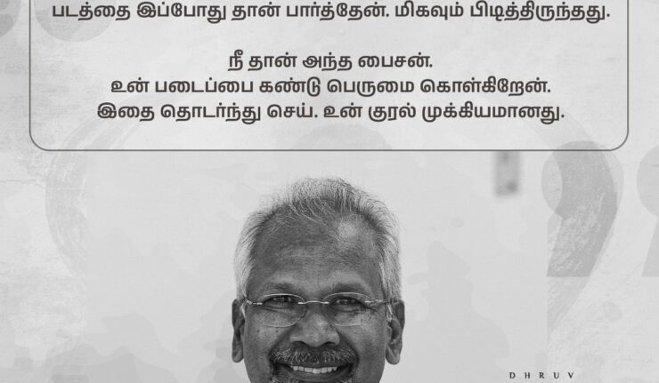 “மாரி படத்தை இப்போதுதான் பார்த்தேன் மிகவும் பிடித்திருந்தது. நீதான் அந்த பைசன், உன் படைப்பை கண்டு பெருமை கொள்கிறேன், இதை தொடர்ந்துசெய், உன் குரல் முக்கியமானது”