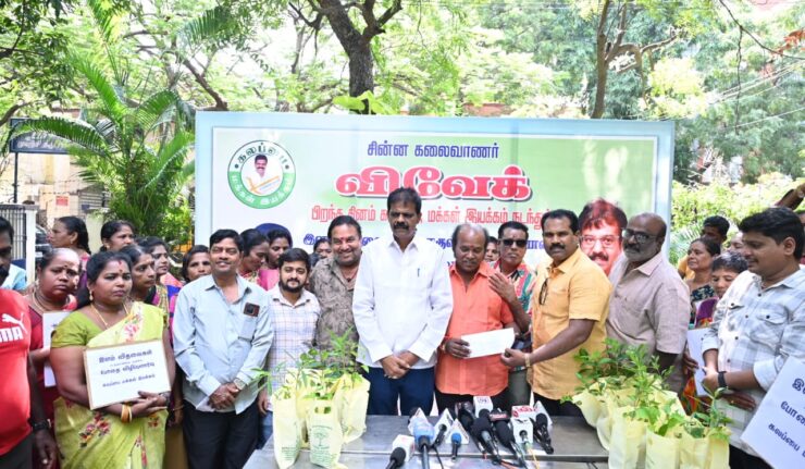 நடிகர் விவேக்கின் சமூக சேவைகளில் மரக்கன்று நடுவது முதன்மையானதாக இருந்தது. அதை நினைவுகூறும் விதமாக இன்று நடந்த நிகழ்வில் பலருக்கும் மரக்கன்றுகள் வழங்கப்பட்டன.