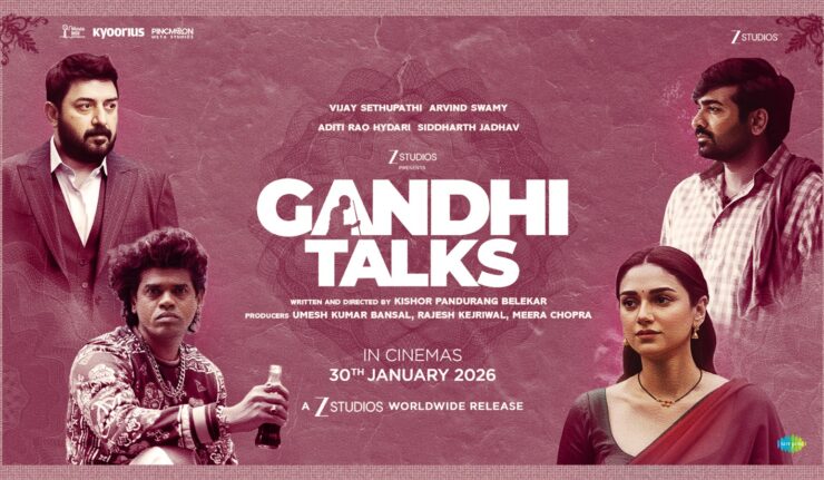 At a time when cinema is often defined by scale and sound, Gandhi Talks chooses restraint, emotion, and stillness to communicate its message. The film brings together an extraordinary ensemble featuring Vijay Sethupathi, Arvind Swamy, Aditi Rao Hydari, and Siddharth Jadhav, all of whom have consciously stepped into a form of storytelling that relies purely on performance and expression.